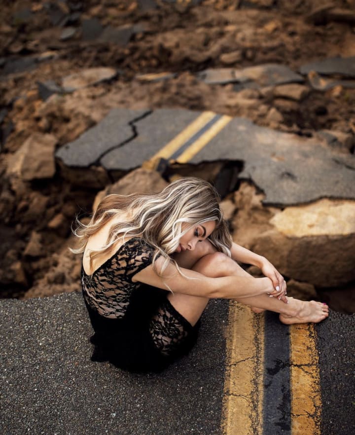 Rule of Rhythm: This rule is when subjects and themes in the photograph are prevalent throughout the entirety of the photo. In this photo, the rhythm is in the broken road:
