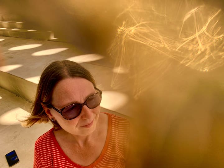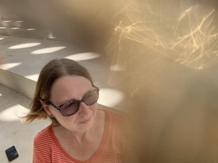 One of the beauties of mobile photography is that it frees you from a typical studio workspace and allows you to experiment and push borders towards expansive growth as a person and in the medium. I drank the blue August skies and sunshine in like sweet nectar quenching the summer thirst in Arizona. Delightful! Caitlin and I arrived at an Apple store full of people and individual conversations testing and comparing products or seeking support. We saw a representative setting up a mic by the large screen surrounded by block seats. The lab itself was quiet compared to the constant chatter going on around. This eased me into a gentle stretch that was outside my normal and helped set the stage for the social interactions and decisive moments to come (thank you Henri-Cartier Bresson and my photography professors at Arizona State for sharing this term with the mobile photography world).