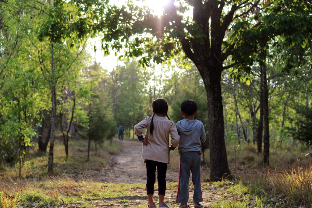 As evening descended, we about to go home when I saw this beautiful lighting coming through the green foliage. I asked them to walk forward a little bit and just stand there as they were and took this photograph. To this day, something about this photograph pulls me in and make me both happy and nostalgic in a way I can never describe.
