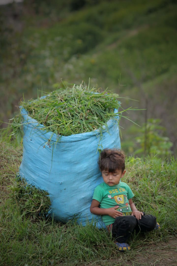 It was late in the evening when I was coming home and saw this little boy waiting for his father sitting beside the cattle fooder his father was collecting. His eyelids were heavy with sleepiness and I was lucky enough to get this photograph of him just dozing off for a moment. I tried my best to pass by him as silently as I could but he was soon awake after I had taken the photograph.