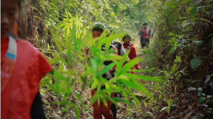 I had also gone with the villagers as a tourist that day and descended earlier from the mountains to get in front of the line so that I could get some shots of the vibrant progression of people coming back down.
