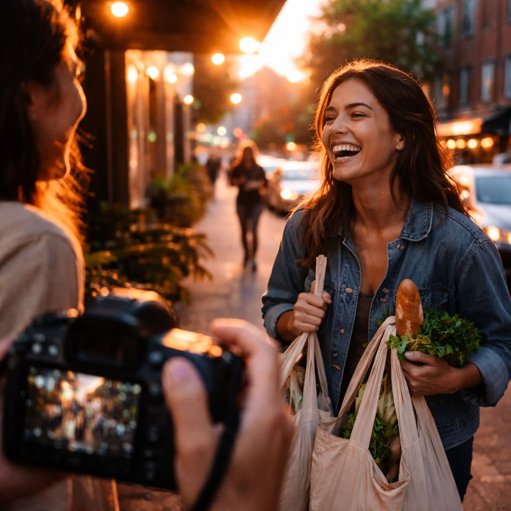 I remember a moment outside a small grocery: fluorescent light spilling onto wet pavement, a woman balancing two bags, laughing at something her friend said off-frame.