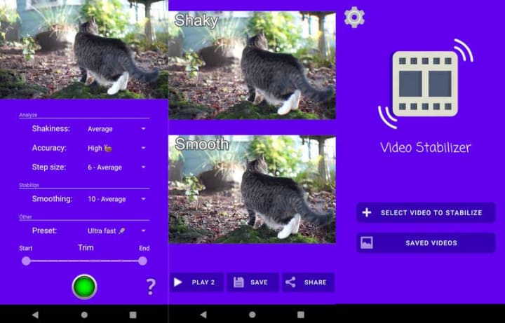 Shaky Video Stabilizer is a free Android software designed specifically for stabilizing shaky video footage. It supports various common video formats, such as MP4, 3GP, and MKV, commonly used on Android devices. With its internal video analysis tool and adjustable settings for shakiness, smoothness, and accuracy, users can achieve their desired stabilization results. The software also includes a convenient video player for previewing videos before and after stabilization. Additionally, Shaky Video Stabilizer offers features like video trimming, cropping, and preview mode, providing users with additional control over their video editing process.