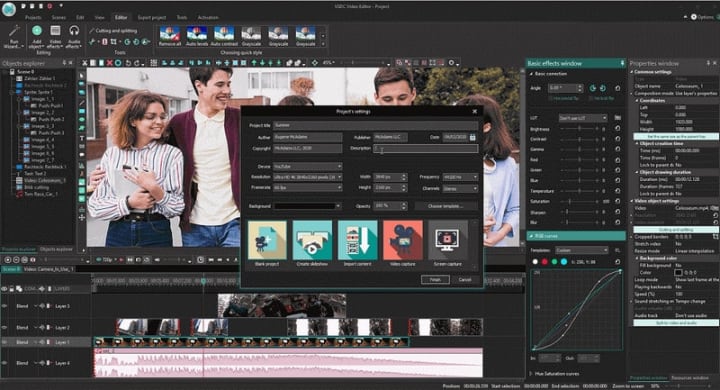 VSDC is a free video editor for Windows PC users. It brings an array of tools that will help you apply minor edits like trimming a video, adding text, and removing the soundtrack – as well as more in-depth montage techniques like color correction, FX, and blending. It is a good choice for both beginners and professionals.