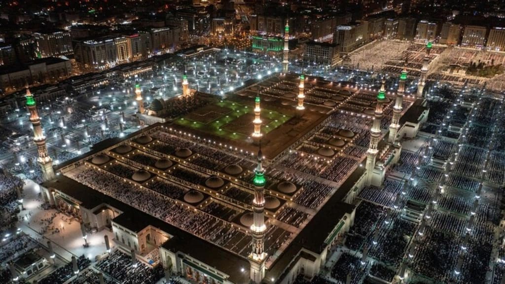 Umbrellas of the Prophet's Mosque dazzle visitors with their beauty