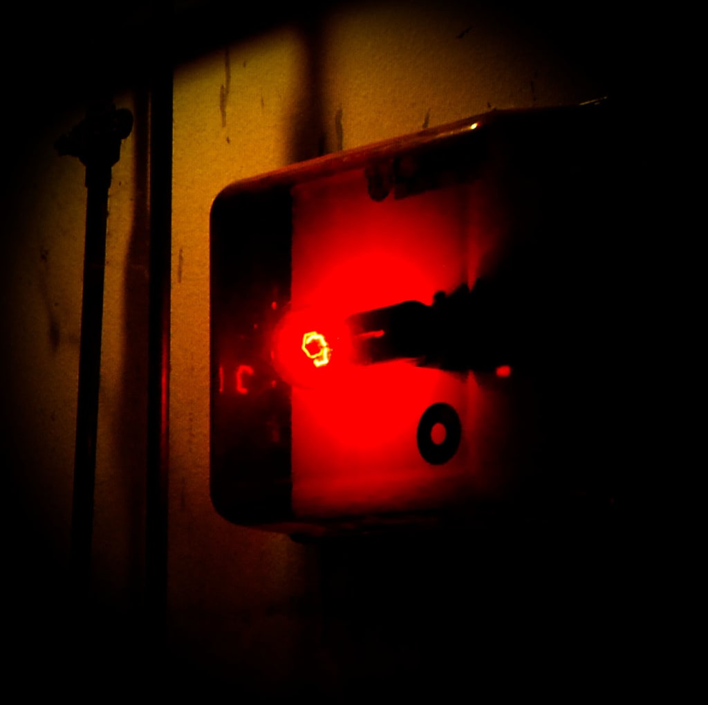 I leave my extinguished glass on the table, stumble inside and turn the red light off.
