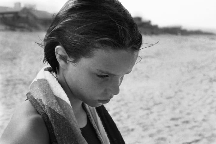 But it was in the last waning days of the vacation, when she abstracted herself from the waves to wrap herself pensively in a striped fraying towel. She looked inwards to her secret world and stood transcendently still. Absent was the bravado and the sharp edge of her persona. And the world arrested in a kind of holiness about her. She was just utterly, purely – her. And I was the only witness upon all the earth.