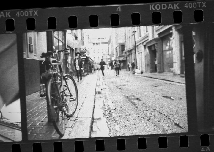 Handling that camera brought back memories from earlier times so I decided to put a roll of film through it before selling it, heading up into Soho, London, my favourite area for shooting the streets.