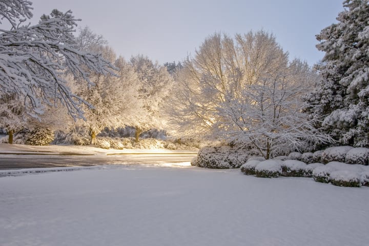 About an hour after dark, I got up from my chair, where I was watching TV and glanced out the front door. I saw I had been right, and snow had blanketed everything. I went back and sat down and started watching the tube again.