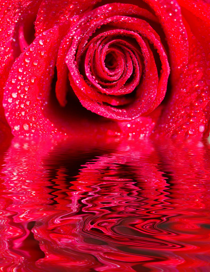 This red rose was edited with the Flaming Pear Flood 2 Plugin to create a mesmerizing water reflection effect. The image evokes a feeling of sensuality, yet within the reflections, there is a subtle darkness. Something within the hidden depths lures the viewer into wondering what is beneath the surface.