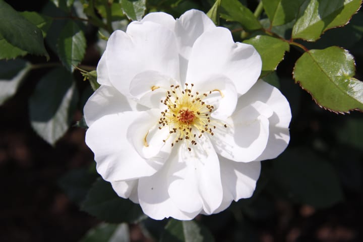 While out and about, I came across this Beach Rose (rugosea Rose Saltspray) and had to capture it's happiness that was shinning so bright. With the use of my iPhone, I was pleased to have photographed this flower with it's delicate petals sill wet from morning dew.