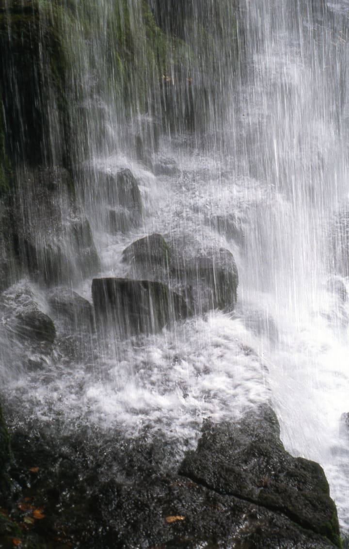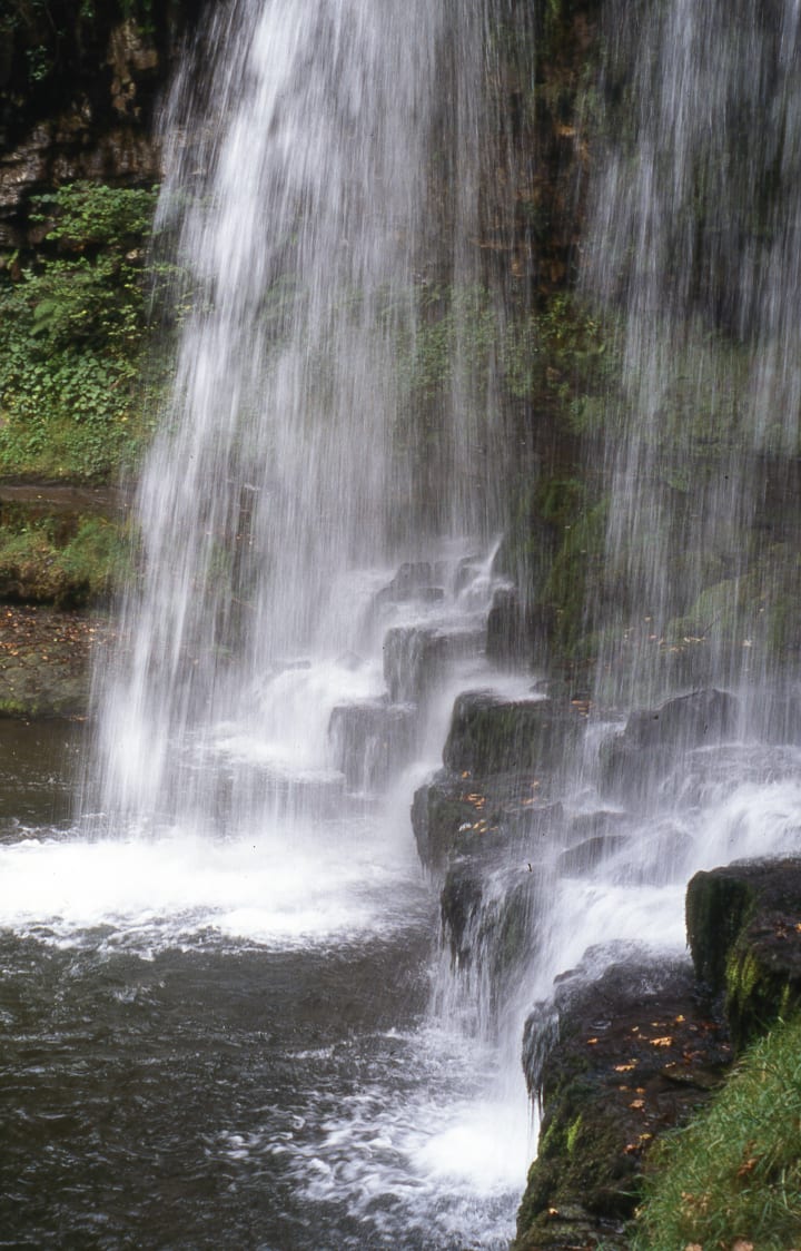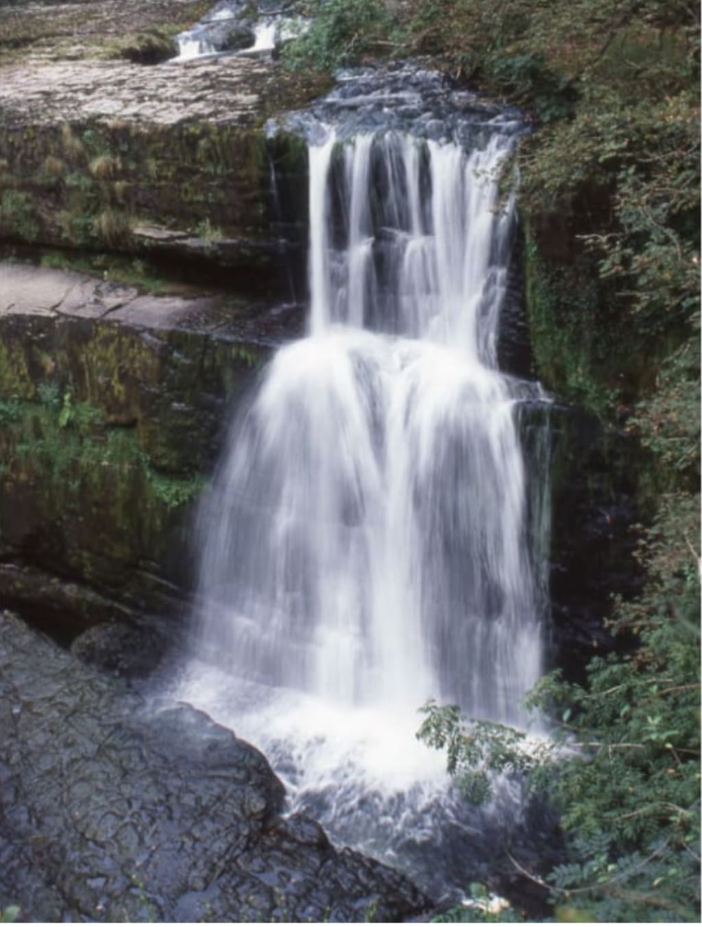The photos on this page were taken in 2002 in Wales, UK, somewhere near Monmouth. There’s no EXIF data; I didn’t blog the location—they were taken on a Pentax MZ-50 using Kodachrome 64, a wonderfully slow, colour slide film. They would’ve been taken at about a second-long exposure, perhaps f/11 or f/16, and I rested the camera on rocks or on a tripod to keep it steady. I scanned them recently and enjoyed the memory of the walk in the forest, the sound of the waterfall and the cluelessness of what had been recorded on that 35mm frame.