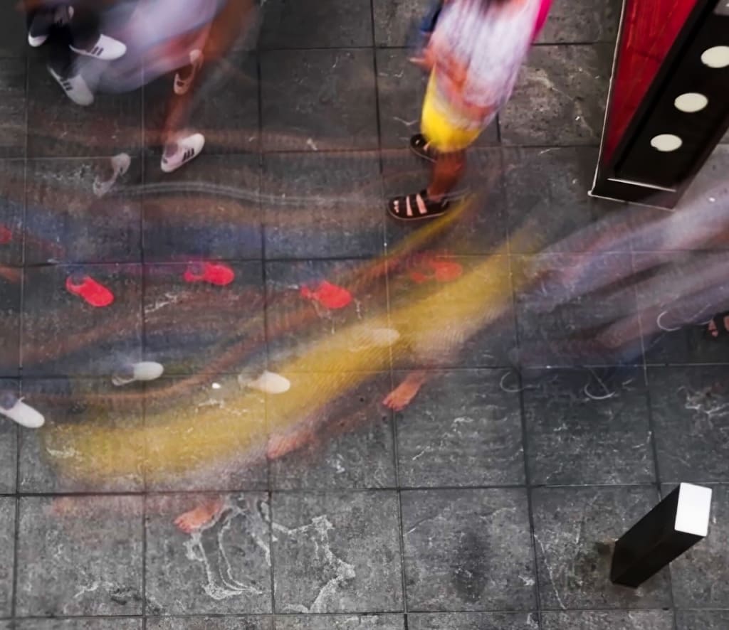 “Ghost Walkers” depicts disembodied white and pink sneakers – even bare feet – strolling across the frame within wisps of yellow and white. Photographed in New York City’s chaotic Times Square, the otherworldly image was created solely using an iPhone 7 and without using any Photoshop, filters, or other manipulations.