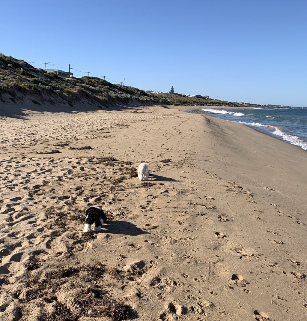 I love your poems and how you alternated them with images, what wonderful places! I love the sea! Your little girls are happy walking! 🐶🐶