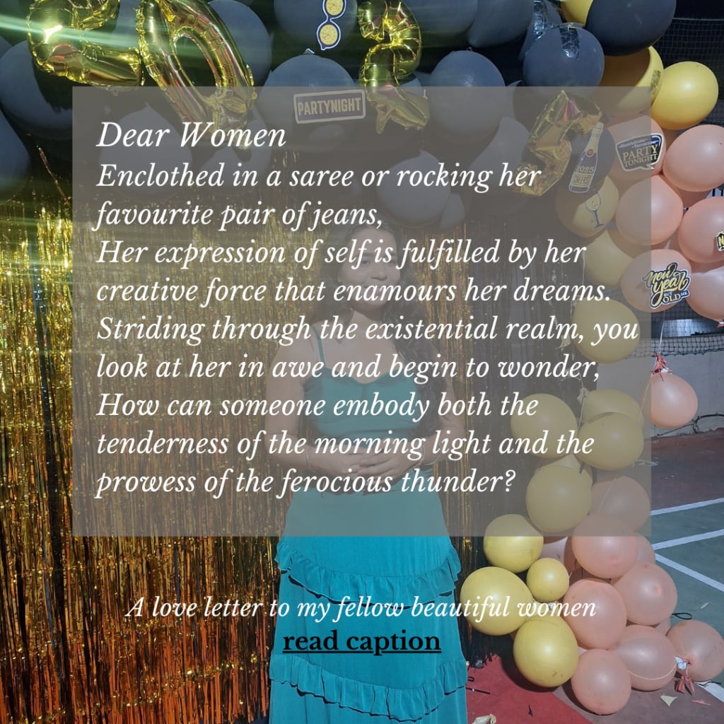 "Striding through the existential realm, you look at her in awe and begin to wonder, // How can someone embody both the tenderness of the morning light and the prowess of the ferocious thunder?" THIS! I loved this poem, Hridya. This is so empowering and full of boldness and strength. Happy International Women's day!!