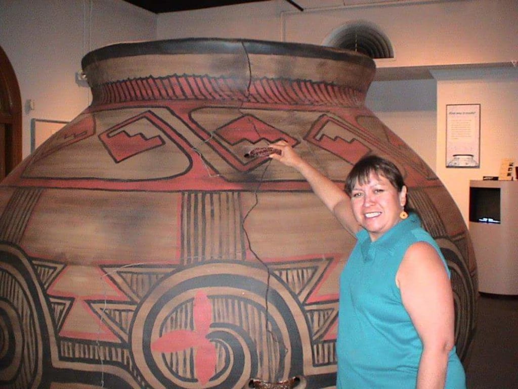 Carrie taught Woodland pottery on reservations in Minnesota to bring back Woodland pottery to the people living here. Carrie had gone to school at the American Indian Institute of Art in Santa Fe, New Mexico. It was a two-year high school and a two-year college program.