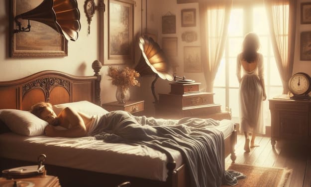 A woman dreams, her heart in flight.