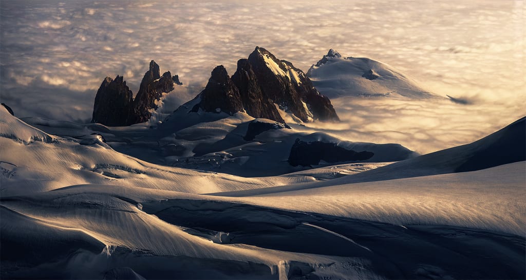 Where glaciers and mountains run,