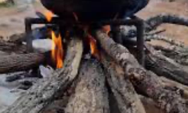 Upon the bonfire, flames did lick,