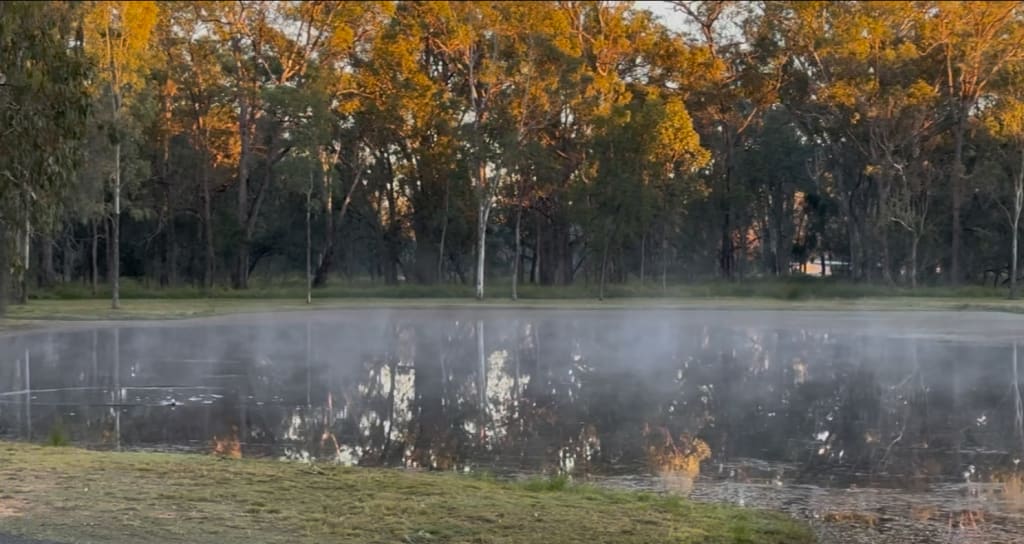 Smokey mists tendril and hover over the surface in diminishing clouds,