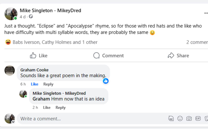 LOL, I love this, Mike! The perfect touch of humor and social commentary :) Well done!