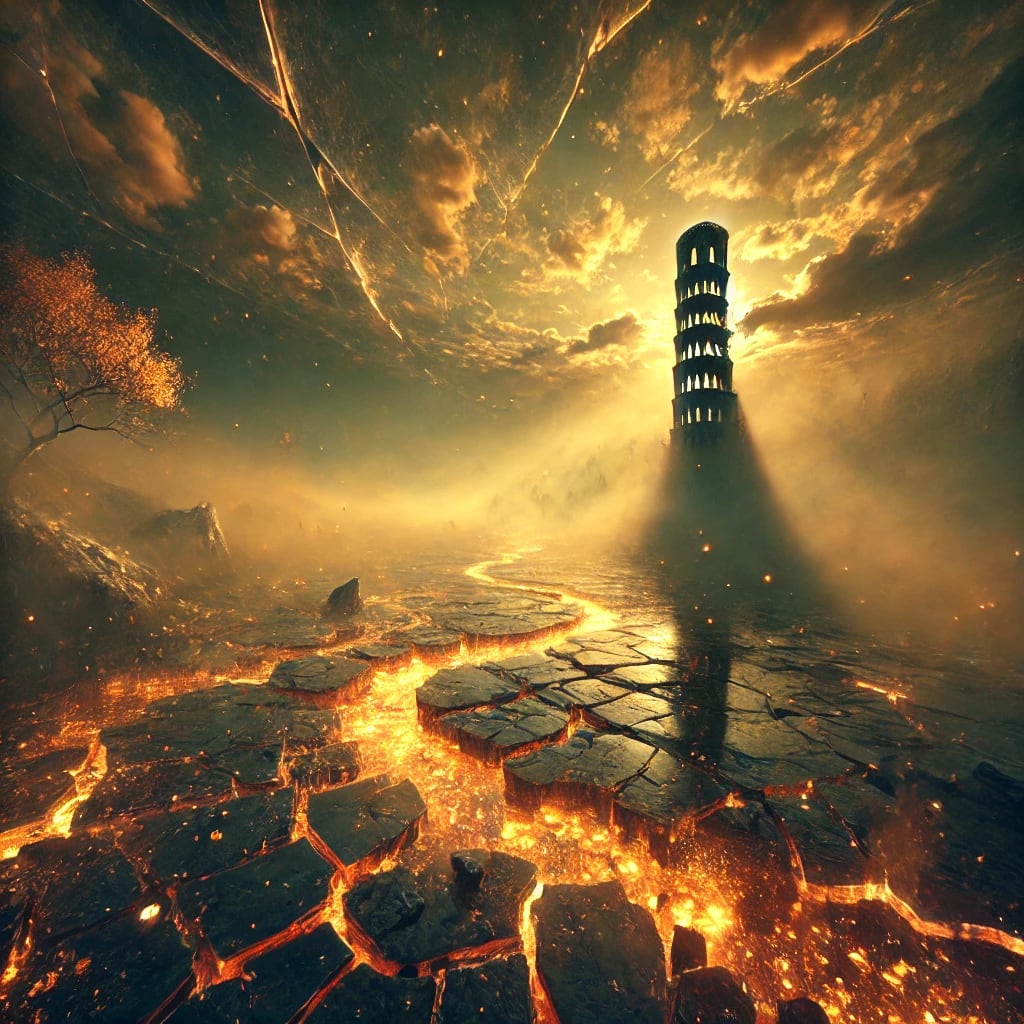 Beneath a sky of fractured gold,