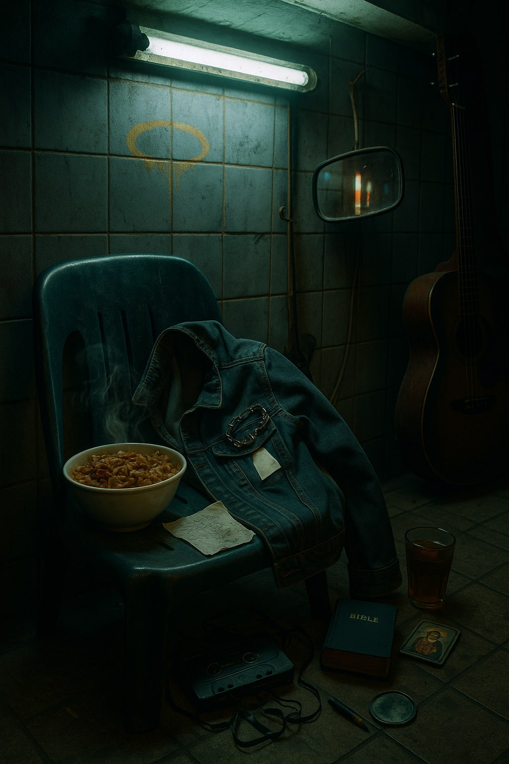 spitting psalms between cigarette burns and PDF sermons with no author.