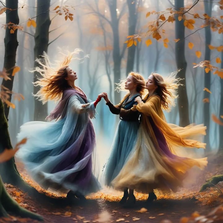 In the forest, beneath the leaves so golden, secrets of the autumn air are told, and lived a fairy, Russet-Red and her sisters so kind, their hearts with warmth and magic intertwined.