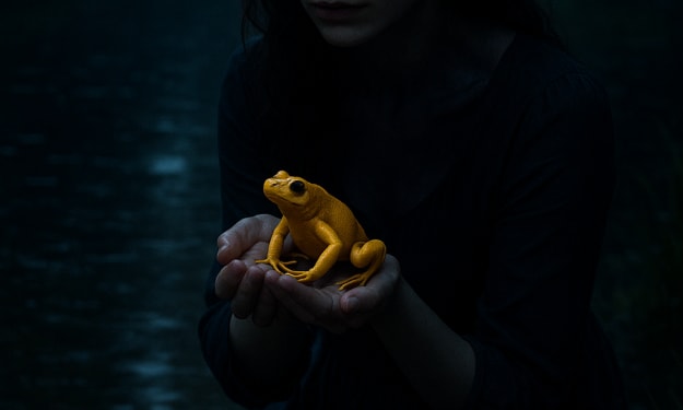 To your hands it leaped, The Golden Frog rests calmly, Feeling your heart break.