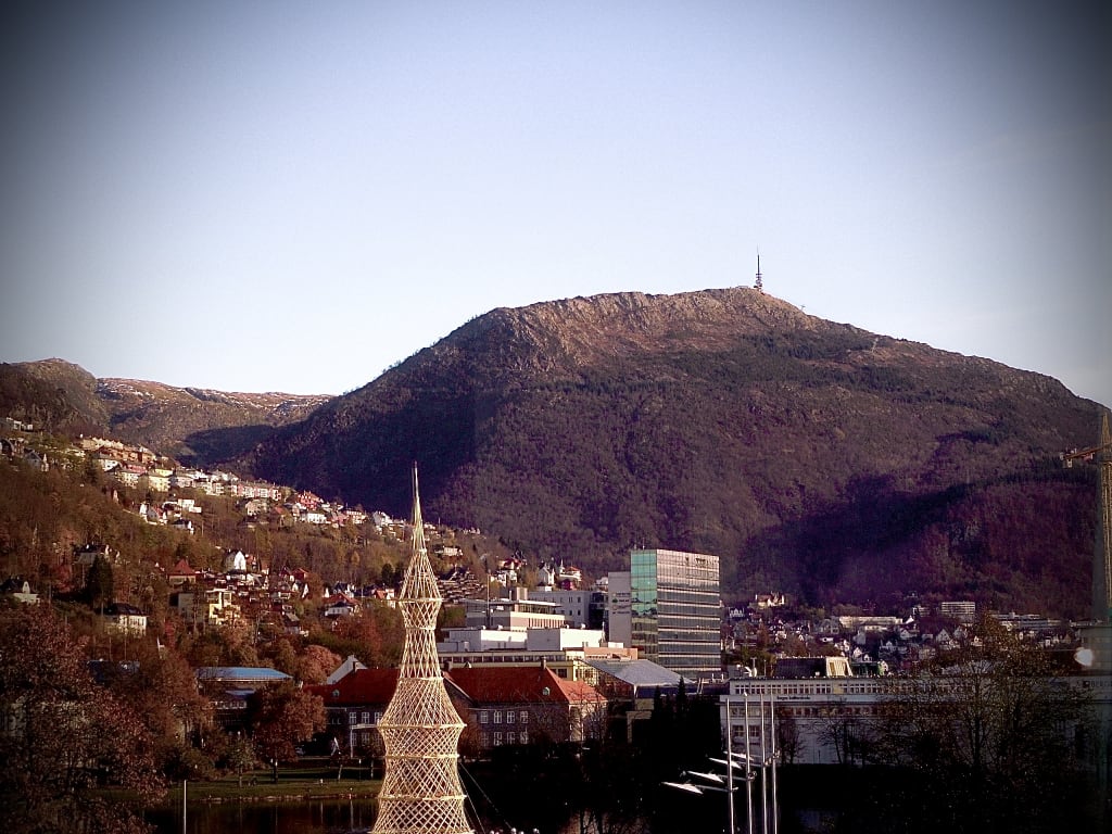 Lowlit, tall top mountain glows