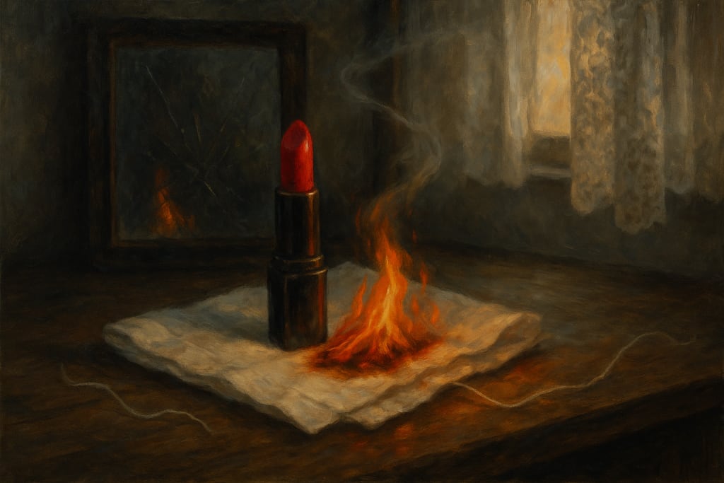This was epically beautiful. I love the imagery you used of the flame and red lipstick against the stark crisp linens of expectation. Hymns all sound better in the minor key.
