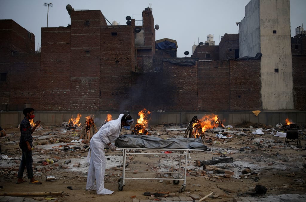 Or their bodies burn while their families watch from a distance