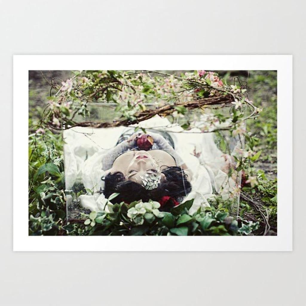 Laying upon the snow white satin, we see the delicate fragility within, and the depth of the thorns