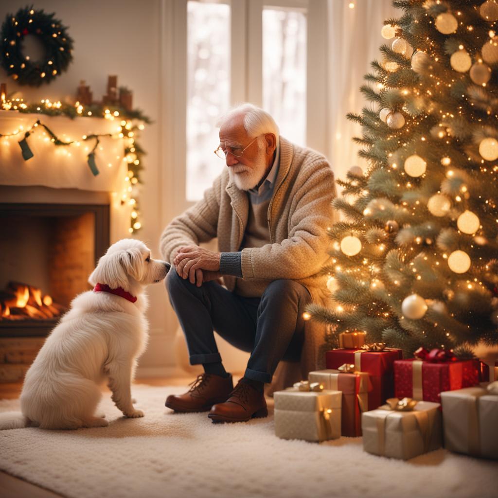 The smell of pine fills the air, As Grandfather tends with utmost care, Fighter circles, his tail a wag, In this festive home, no heart shall lag.
