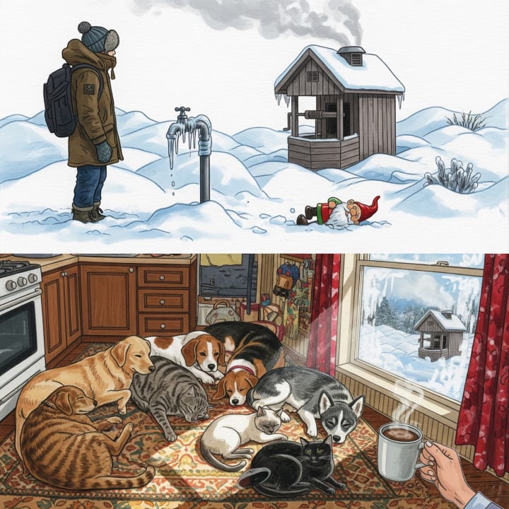 I loved this fun poem. You are the master of poetic story telling. Hope you and your family are staying warm enough. I could picture your girls and animals huddled together for warmth as I read this. It made me jealous, we've hardly gotten any snow this year. I don't mind cold if there is snow but it feels unjust that I'm freezing down to my bones and I didn't even get to enjoy watching the snow fall.