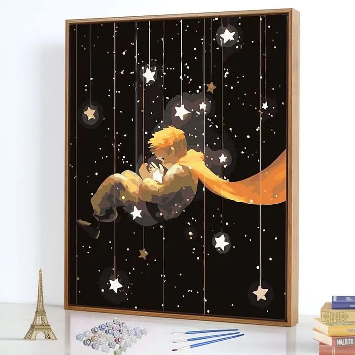 The charm of the classic cartoon paint by numbers is something else, it features beloved cartoon characters and offers a delightful way to reconnect with childhood memories. Whether it’s the timeless antics of Mickey Mouse, the whimsical adventures of SpongeBob SquarePants, or Boy and The stars, wall art, Boy in the dream night illustration, these kits capture the essence of these beloved cartoons and allow you to express your artistic flair.