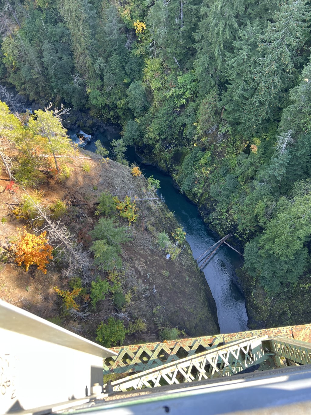 Built in 1929, this bridge originally carried a rail line that enabled logging operations in new areas of the Olympic Peninsula. It is a favorite spot for us to visit, except in winter. Signs are posted, but people ignore them. Five to seven people fall off the bridge every year, and the majority die, even though the area has scattered warning signs, including one describing how steep, slippery, and unsafe the bridge is. Rescuers said the area is known for its deceptively steep terrain and the number of lives it takes each year. A fire department official said the ratio is about 20 dead to every one person they find alive at the bottom. In 2024, a teen fell 400 feet and had to be rescued. Recently, an escaped felon was talked down from the bridge and stopped from committing suicide.