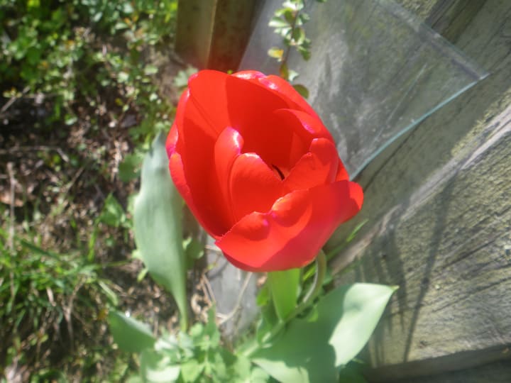 Red tulips brought color to the garden so bright and beautiful. Gathered here and there in the garden they were one of the first signs of spring.