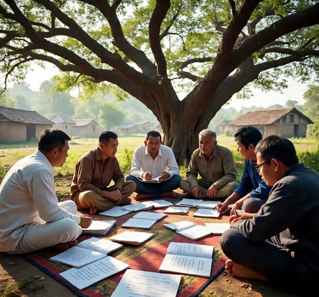 That evening, despite the chaos, Idris went to the courtyard. He sat alone under the banyan tree, wondering if anyone would come. To his surprise, one by one, people began to arrive—first the shopkeeper, then the schoolteacher, then the farmer, and soon nearly everyone.