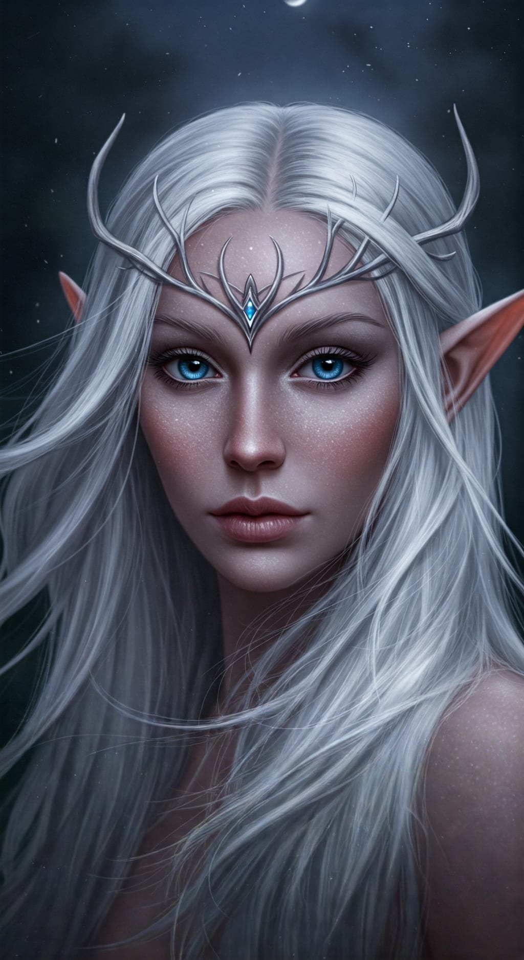 A captivating vision of elven grace, bathed in the moon's soft glow. Regal and striking, her beauty commands attention and respect. A goddess brought to life, blending divine allure with otherworldly charm. Innocence and wildness intertwine, creating a captivating, natural beauty. A declaration of love, capturing the untamed spirit of the beloved. Fiery passion and tender devotion meet in this final, heartfelt image☀️