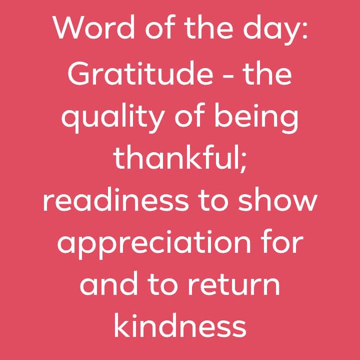 Gratitude - the quality of being thankful; readiness to show appreciation for, and to return kindness