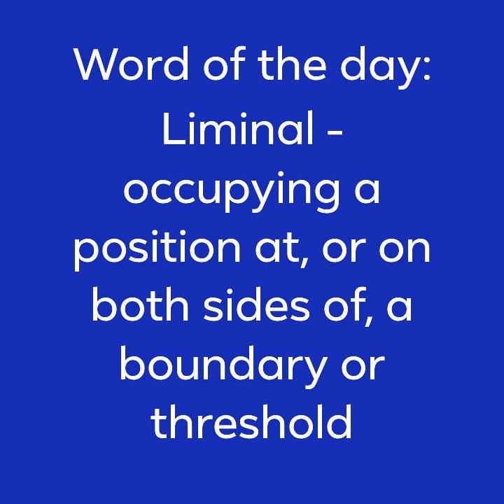 Liminal - occupying a position at, or on both sides of, a boundary or threshold