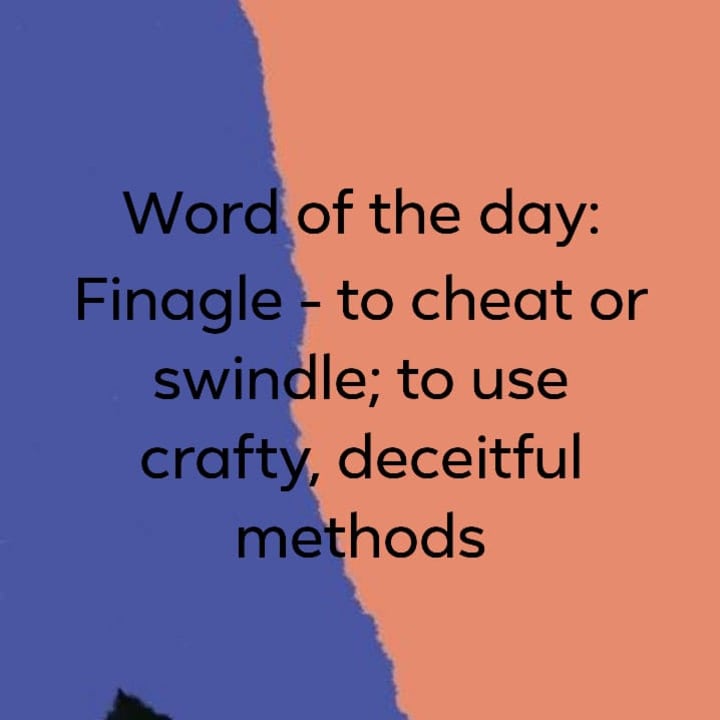 Finagle - to cheat or swindle; to use crafty, deceitful methods