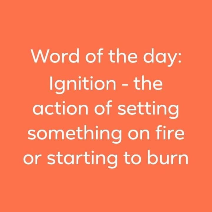 Ignition - the action of setting something on fire or starting to burn