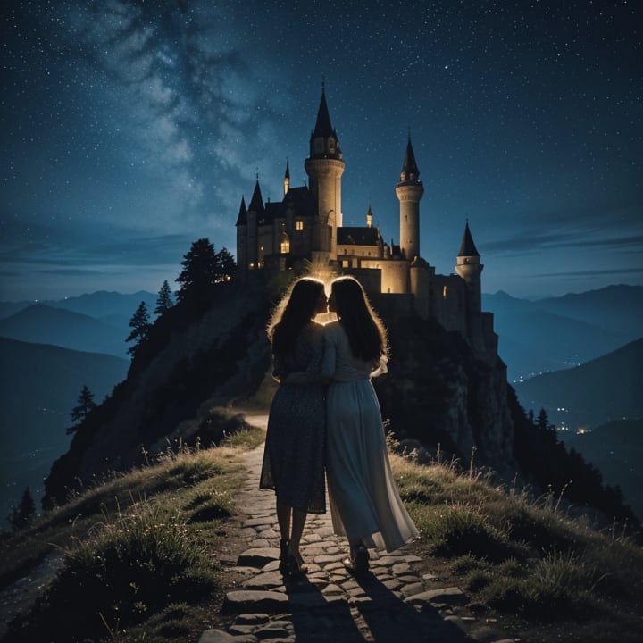 We caress and hug each other, creating sparks of light