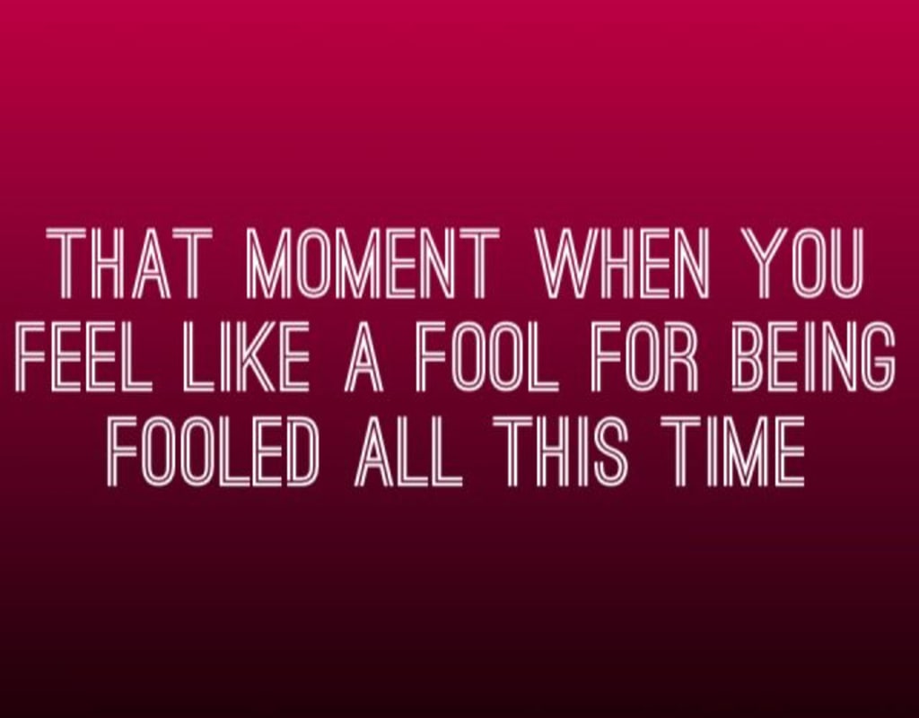 No matter your differences or choices you make just know that anything can be worked out. Be willing to make an effort and communicate. Know that through hope and faith you can conquer anything. Put the time in, don't just through the towel in. You may feel like a fool at the moment but once you get past this your love and relationship can either break or grow stronger. Know that you can have difference in opinion but be able to still work through it. You aren't a fool, you are only a fool in the moment!