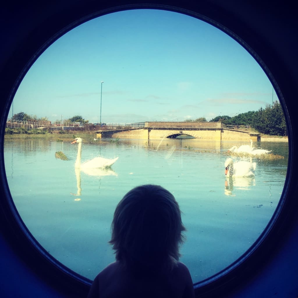 I live on a houseboat with my young son; on an estuary where the river meets the sea in Southern England U.K.