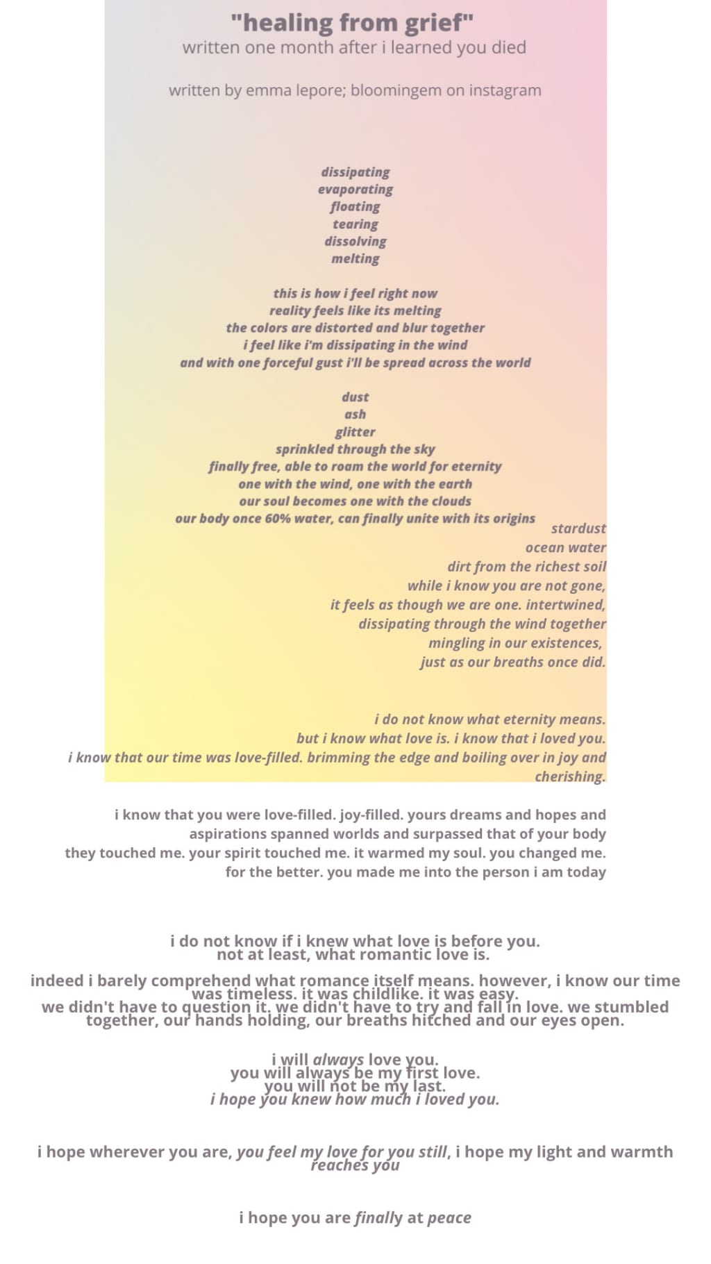 i know that you were love-filled. joy-filled. yours dreams and hopes and aspirations spanned worlds and surpassed that of your body
