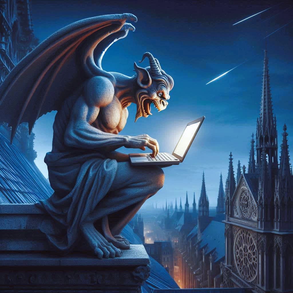 Gargoyle checking out everyone's crazy FB posts. 🤪