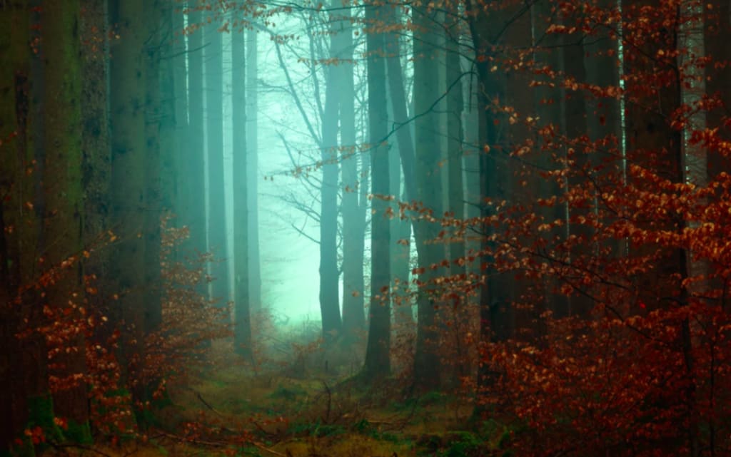 He hears a noise in the woods ahead,
